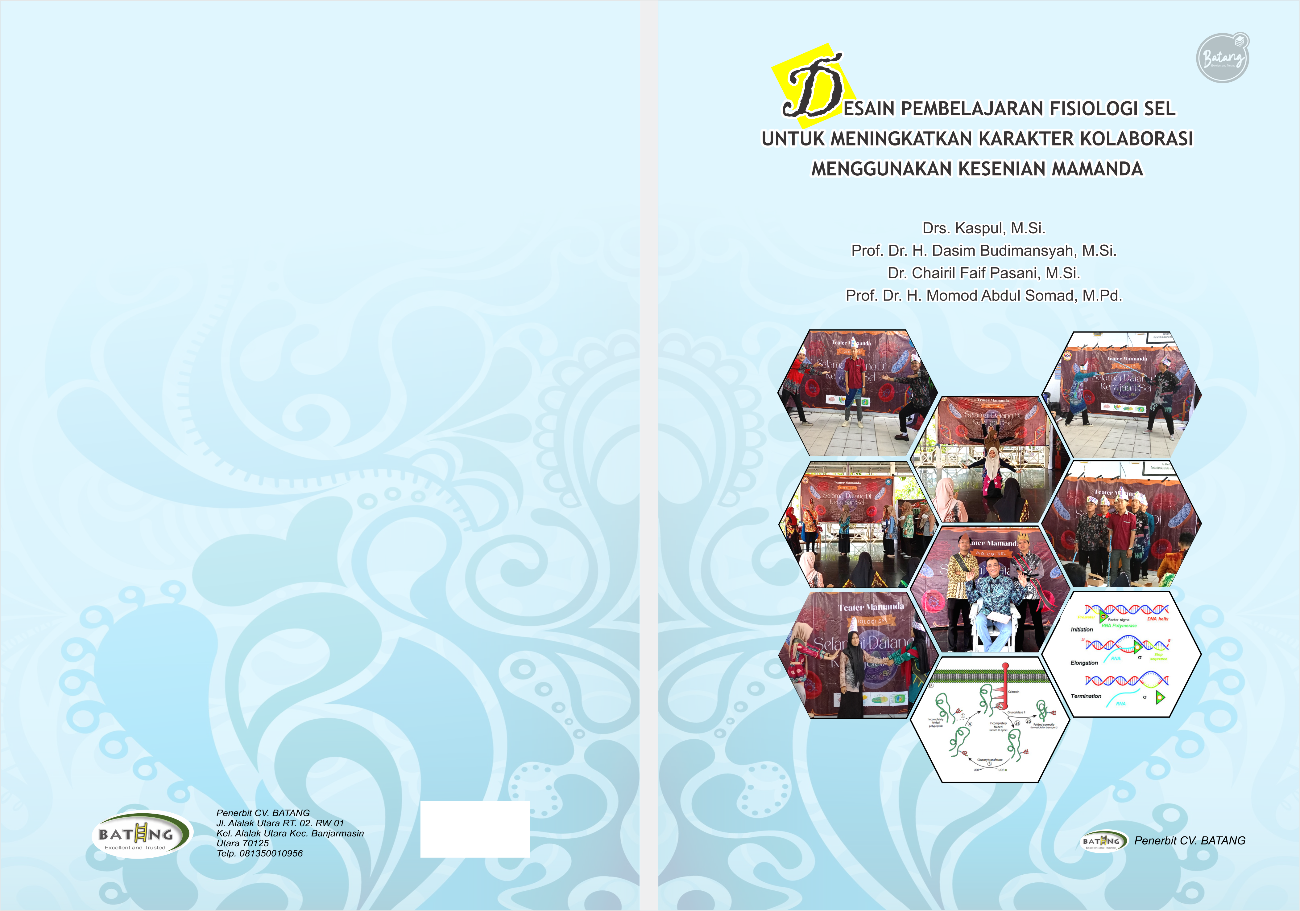 Buku Desain Pembelajaran Fisiologi Sel untuk meningkatkan Karakter Kolaborasi menggunakan Kesenian Mamanda, merupakan buku yang dapat menjadi rujukan bagi para pendidik umumnya dan pendidik bidang biologi khususnya dalam mengembangkan desain pembelajaran yang aktif, inovatif, kreatif, efektif, menarik, mampu meningkatkan kemampuan berpikir kritis, dan bermuatan budaya lokal sehingga meningkatkan kemampuan berpikir global bertindal lokal bagi peserta didik.