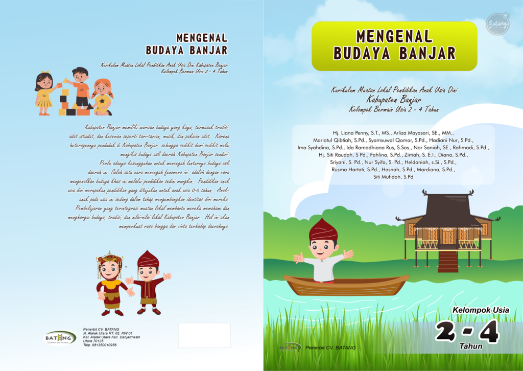 Buku Ajar Mengenal Budaya Banjar “Kurikulum Muatan Lokal PAUD Kabupaten Banjar Kelompok Bermain Usia 2 – 4 Tahun” adalah buku pegangan guru untuk mengajar di PAUD Jenjang usia 2 sampai 4 tahun. Buku ini berisikan materi dengan keragaman potensi daerah, karakteristik daerah, keunggulan, dan kebutuhan daerah, serta bidang pengembangan dan kegiatan proyek penguatan profil pemuda pancasila serta lingkungan sekolah masing-masing untuk mencapai tujuan pendidikan pada anak usia dini. Buku ini juga digunakan sebagai pedoman dalam penyelenggaraan kegiatan pembelajaran untuk mencapai tujuan pada pendidikan anak usia dini.