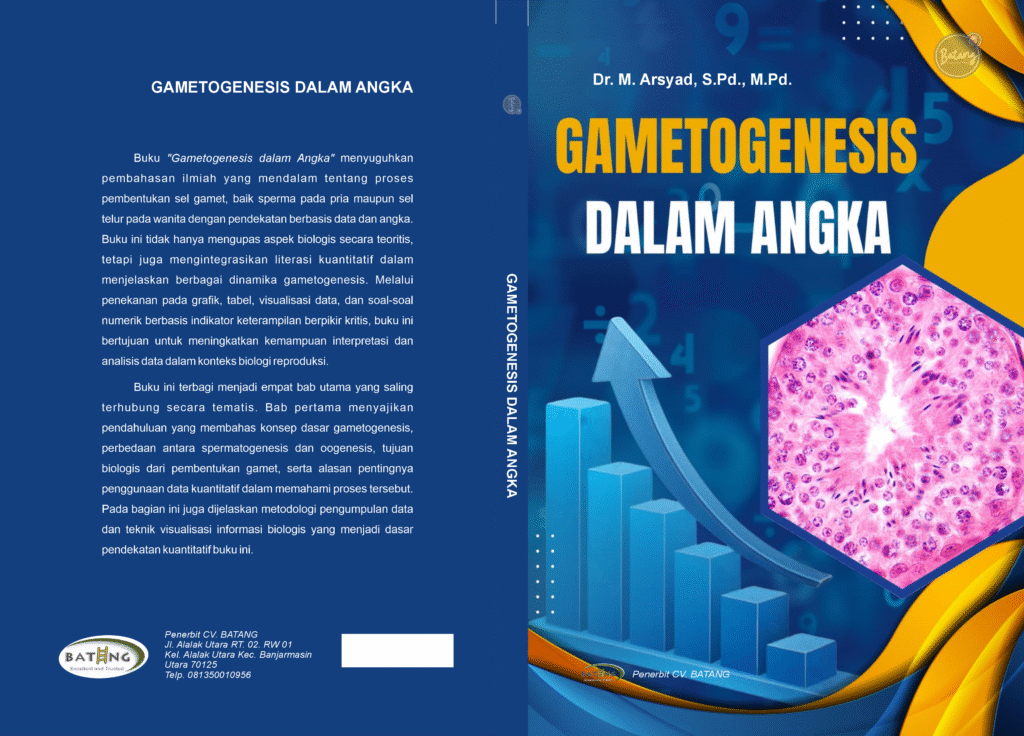 Buku "Gametogenesis dalam Angka" menyuguhkan pembahasan ilmiah yang mendalam tentang proses pembentukan sel gamet, baik sperma pada pria maupun sel telur pada wanita dengan pendekatan berbasis data dan angka. Buku ini tidak hanya mengupas aspek biologis secara teoritis, tetapi juga mengintegrasikan literasi kuantitatif dalam menjelaskan berbagai dinamika gametogenesis. Melalui penekanan pada grafik, tabel, visualisasi data, dan soal-soal numerik berbasis indikator keterampilan berpikir kritis, buku ini bertujuan untuk meningkatkan kemampuan interpretasi dan analisis data dalam konteks biologi reproduksi.