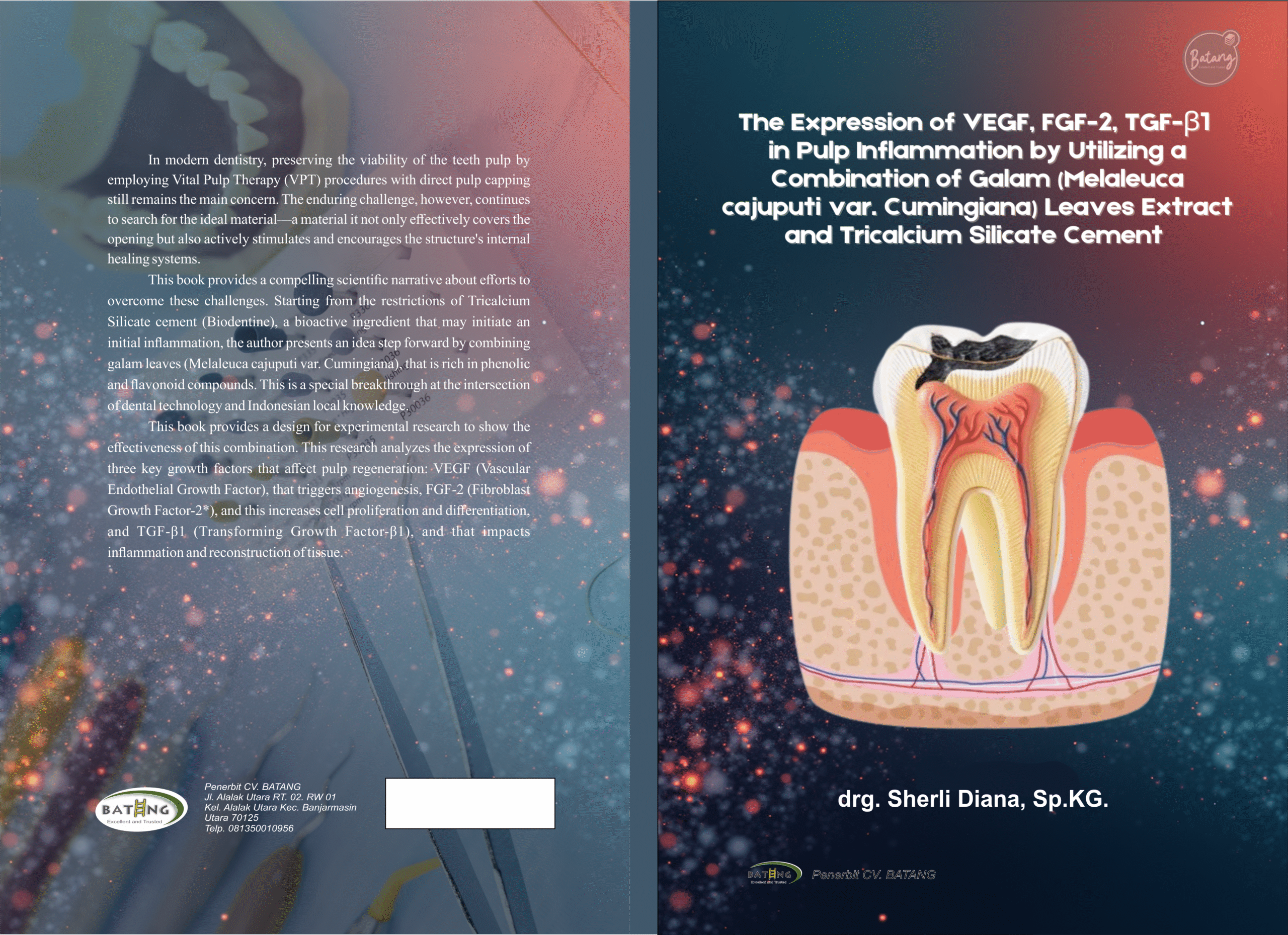 This book provides a compelling scientific narrative about efforts to overcome these challenges. Starting from the restrictions of Tricalcium Silicate cement (Biodentine), a bioactive ingredient that may initiate an initial inflammation, the author presents an idea step forward by combining galam leaves (Melaleuca cajuputi var. Cumingiana), that is rich in phenolic and flavonoid compounds. This is a special breakthrough at the intersection of dental technology and Indonesian local knowledge.