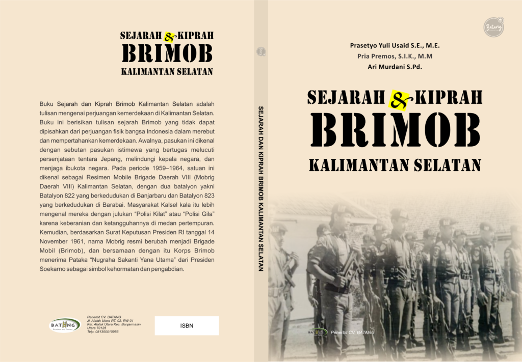 Buku Sejarah dan Kiprah Brimob Kalimantan Selatan adalah tulisan mengenai perjuangan kemerdekaan di Kalimantan Selatan. Buku ini berisikan tulisan sejarah Brimob yang tidak dapat dipisahkan dari perjuangan fisik bangsa Indonesia dalam merebut dan mempertahankan kemerdekaan. Awalnya, pasukan ini dikenal dengan sebutan pasukan istimewa yang bertugas melucuti persenjataan tentara Jepang, melindungi kepala negara, dan menjaga ibukota negara. Pada periode 1959–1964, satuan ini dikenal sebagai Resimen Mobile Brigade Daerah VIII (Mobrig Daerah VIII) Kalimantan Selatan, dengan dua batalyon yakni Batalyon 822 yang berkedudukan di Banjarbaru dan Batalyon 823 yang berkedudukan di Barabai. Masyarakat Kalsel kala itu lebih mengenal mereka dengan julukan “Polisi Kilat” atau “Polisi Gila” karena keberanian dan ketangguhannya di medan pertempuran. Kemudian, berdasarkan Surat Keputusan Presiden RI tanggal 14 November 1961, nama Mobrig resmi berubah menjadi Brigade Mobil (Brimob), dan bersamaan dengan itu Korps Brimob menerima Pataka “Nugraha Sakanti Yana Utama” dari Presiden Soekarno sebagai simbol kehormatan dan pengabdian.